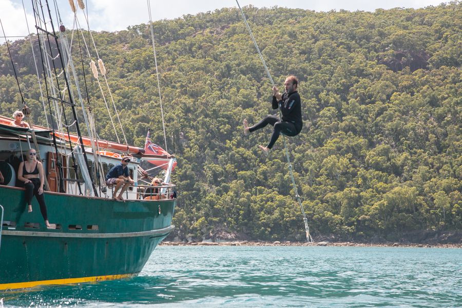 Solway Lass - Solway Lass is a big traditional sailing ship that tours for 3 days and 3 nights. This tour includes a Tarzan rope and lots of snorkelling. Solway Lass takes 32 guests and has a mix of both private and shared accommodation, attracting solo travellers, families, couples and groups of friends. Solway Lass is great if you want to experience authentic sailing on board a tall ship and meet a mixed group of travellers.