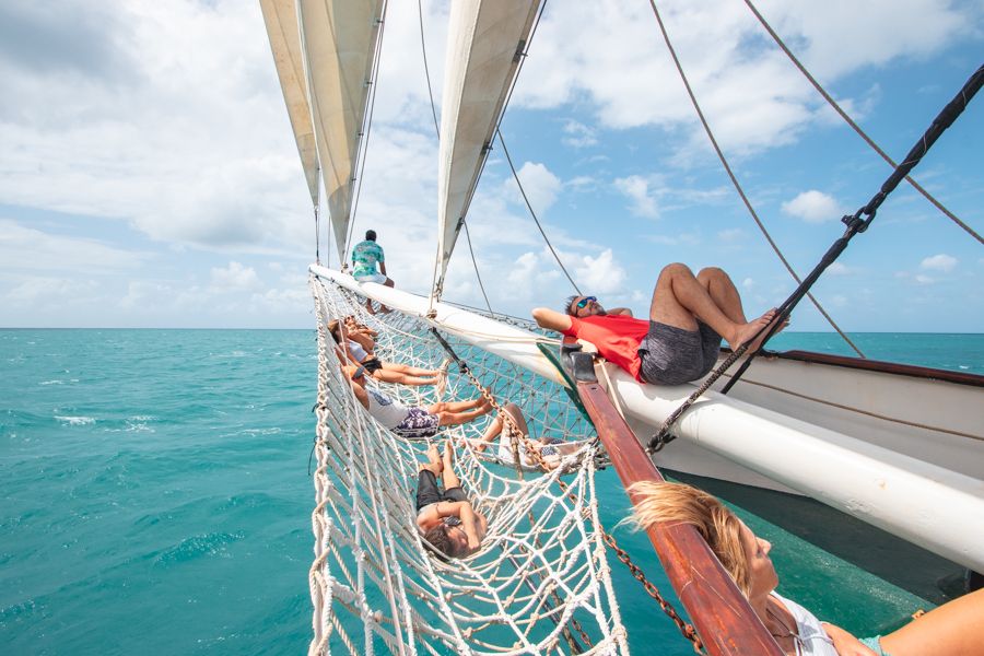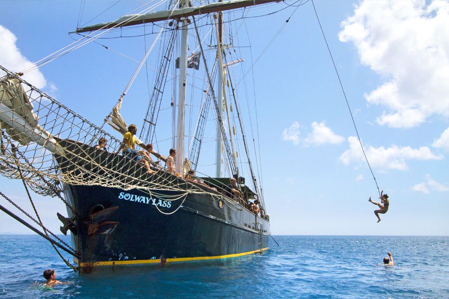 Solway Lass is the oldest ship frequenting the Whitsundays Islands, operating island tours since 1999 and having over 100 years of sailing time under her belt. Christened in 1902 in Holland, she has a lengthy and intricate legacy, full of adventure, turmoil, tragedy and triumph. Her 11 sails and 170 tonnes of history have been witness to two world wars, the turn of the century and countless technological advances, and yet she perseveres and continues to sail the seas as one of the favourites in the Whitsundays.