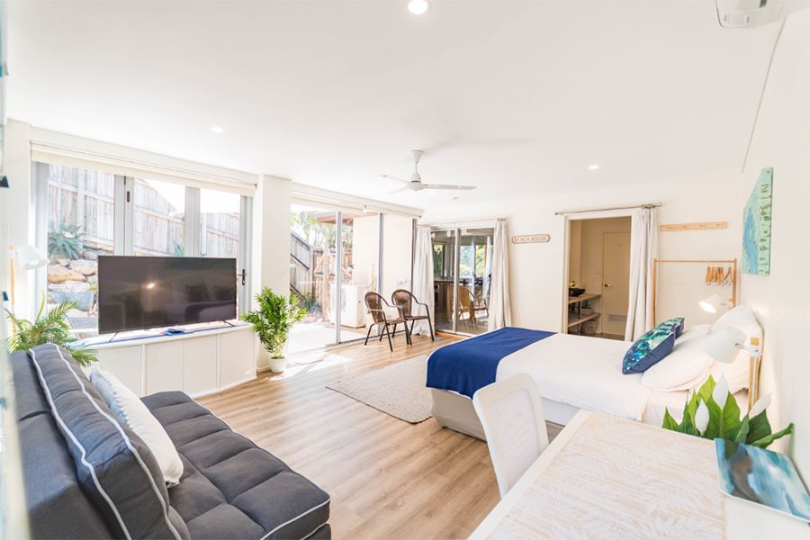 Our spacious Townhouse is equipped with stylish and modern decor and a large kitchen for all your cooking needs, lounge room, outdoor dining and all bedrooms are air-conditioned and have private ensuite bathrooms. One car space is also available.