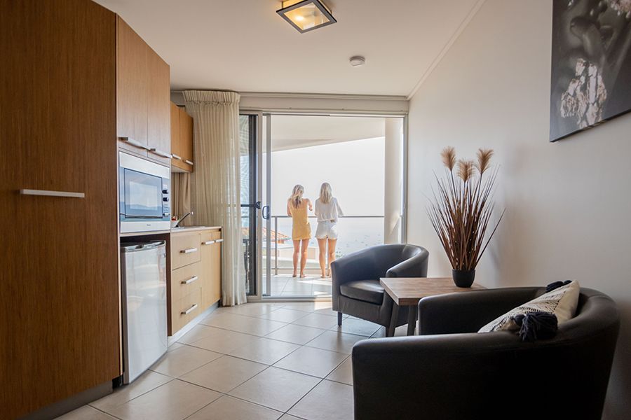 Featuring class and style, our one-bedroom studio apartment has a central bathroom, a fully-equipped kitchenette, a comfortable lounge setting and a private balcony.