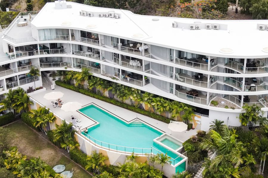 Rest your head in the deluxe Airlie Searene Apartments, nestled in the heart of the town. Located in one of the most sought-after resorts in Airlie Beach, choose from a luxe fully self-contained studio, or a lavish two-bedroom apartment, depending on your needs and number of guests. Featuring a stunning panoramic view of the Coral Sea, a state-of-the-art wet-edge infinity pool and a full kitchen or kitchenette set up, it's the perfect stay for couples, families, friends and people who just want to get away!