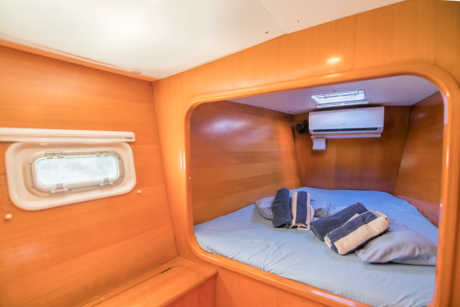 Sail into paradise on board Whitsunday Blue and create memories that will last you a lifetime! Taking out a maximum of only 8 passengers, you are guaranteed a relaxed and intimate setting that is perfect for honeymooners and couples. Our experienced crew will take you to all the hot spots of the region and choose from fun activities such as snorkelling, bush walking, sailing or sit back and relax, soak up the sun and let our crew take care of everything else. Whitsunday Blue is a very spacious vessel. She has four private cabins (2 queen sized beds, 2 double sized beds) and the saloon will seat everyone comfortably for dinner. The large aft bimini offers substantial shade to hide away from the sun if you would prefer. The spacious lounging area on the foredeck has two huge comfortable nets to lounge around on whilst you soak up the Whitsunday sunshine.