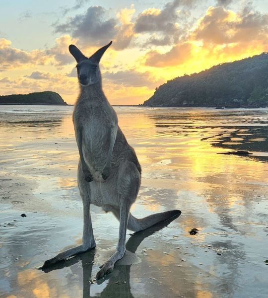 Wake up early and watch kangaroos frolic in the sunrise at Cape Hillsborough!