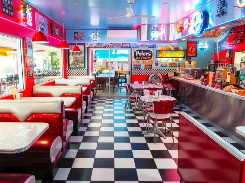 - Enjoy a hearty meal at a 50's retro-style American Diner