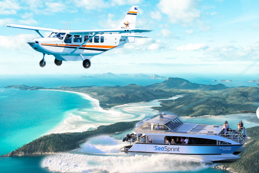Start your day with a 60 minute flight over the Whitsunday Islands and Great Barrier Reef, with guaranteed window seats over iconic sights such as Hill Inlet, Whitehaven Beach, and Heart Reef. Following your flight, you have a whole day ahead of boating adventures, with Sea Sprint offering the most extensive day trip in the Whitsundays. Travelling on board the fast and modern vessel, purpose-bu...