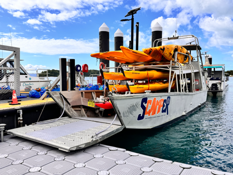 After checking in with the Scamper staff at the Shute Harbour Ferry Terminal near Airlie Beach, board the vessel and head off to Whitsunday Island! You’ll be travelling in a specially designed barge that can pull up right onto the beach, making it a comfortable and smooth journey for everyone.