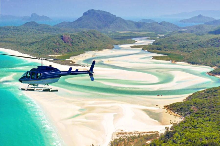 - Scenic helicopter flight including Whitehaven Beach, Hill Inlet and the famous Heart Reef (approx 30 minutes each way)