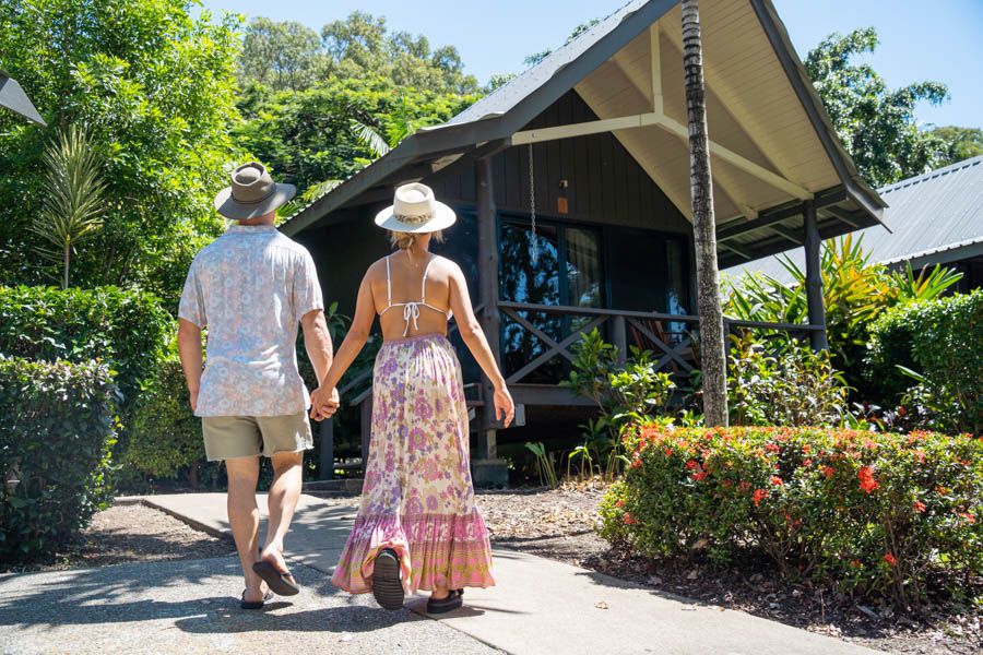 Hamilton Island's Palm Bungalows are charming and reasonably priced, they are an affordable choice for couples seeking the privacy of a garden cabin. Well-positioned between Catseye Beach and the Marina Village, each free-standing bungalow has a furnished balcony and is set in tropical landscaped gardens. The air-conditioned Palm Bungalows are serviced daily and were recently renovated. So fresh decor and modern amenities make them an excellent option for couples and small families looking to comfortably relax.