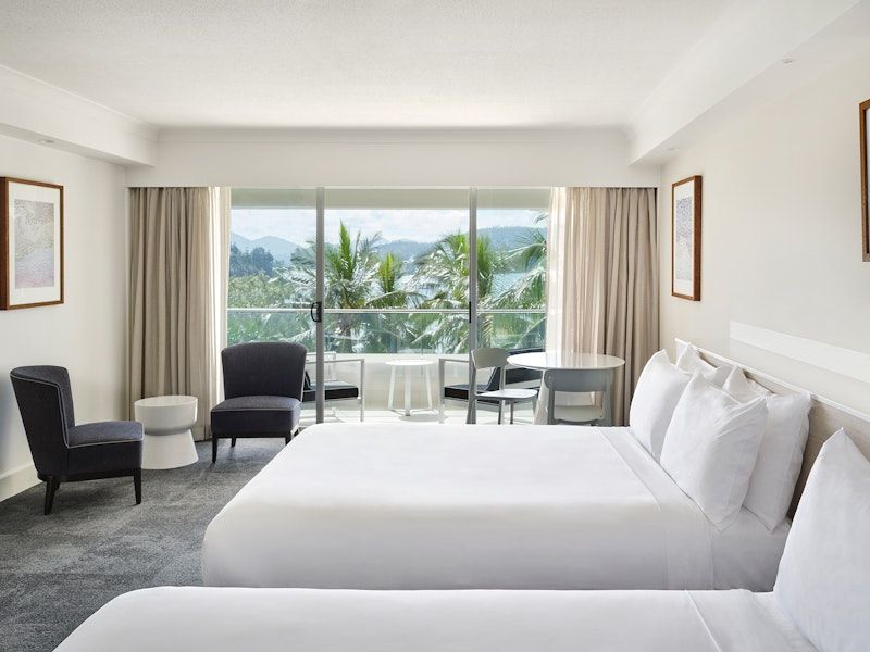 Reef View Hotel guests have complimentary use of non-motorised water sports and the hotel has a tours and activities desk, lobby shop and fully serviced Business Centre. All rooms are spacious and well-appointed, with a furnished balcony, internet access and a bathroom with a separate bath and shower. Garden View rooms have leafy views and ocean glimpses, while each Coral Sea View room has spectacular views over Catseye Bay and nearby Whitsunday Island.