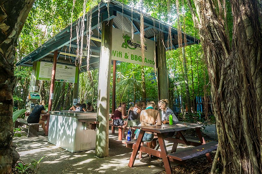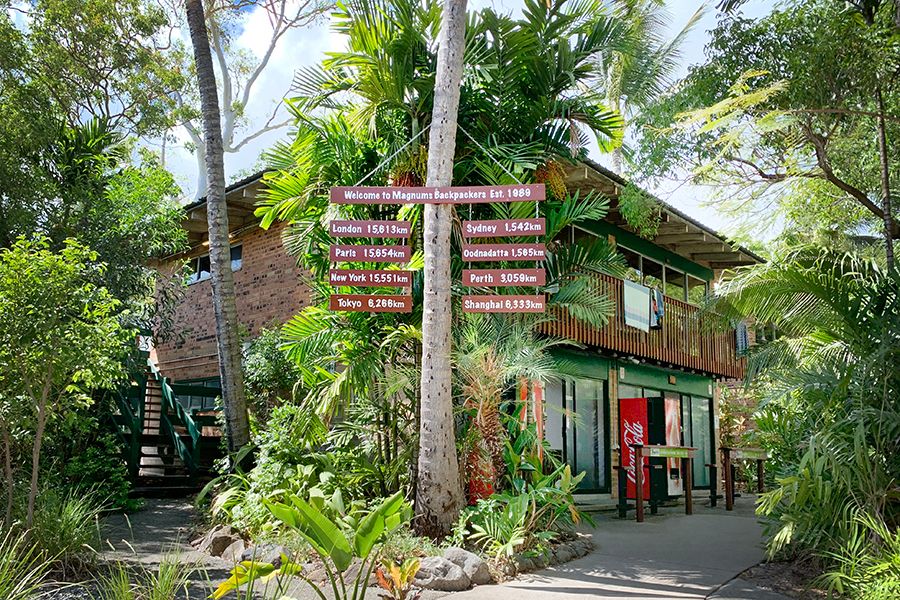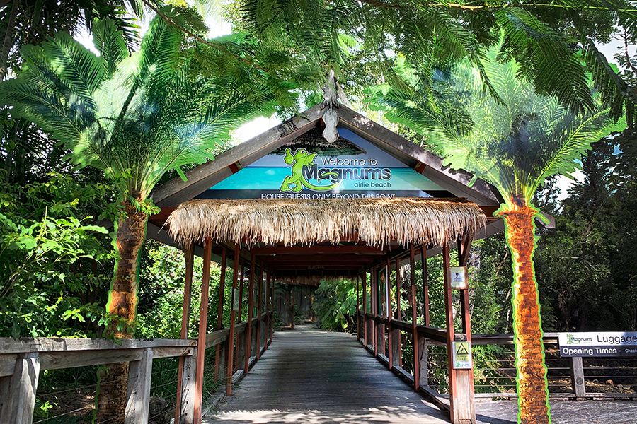 Book in at Magnums Airlie Beach and discover the hidden rainforest setting right in the heart of Airlie Beach... Only 5 minutes walk from Transit Centre, just across the road from the famous Airlie Beach swimming Lagoon, a hop, skip and a jump away from all of Airlie's famous bars and only walking distance of the main departure marina and all boat companies, all roads definitely lead to Magnums Airlie Beach!