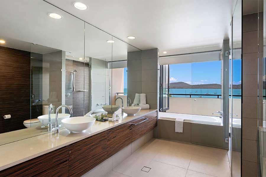 - Views of the turquoise Coral Sea or the landscaped tropical gardens