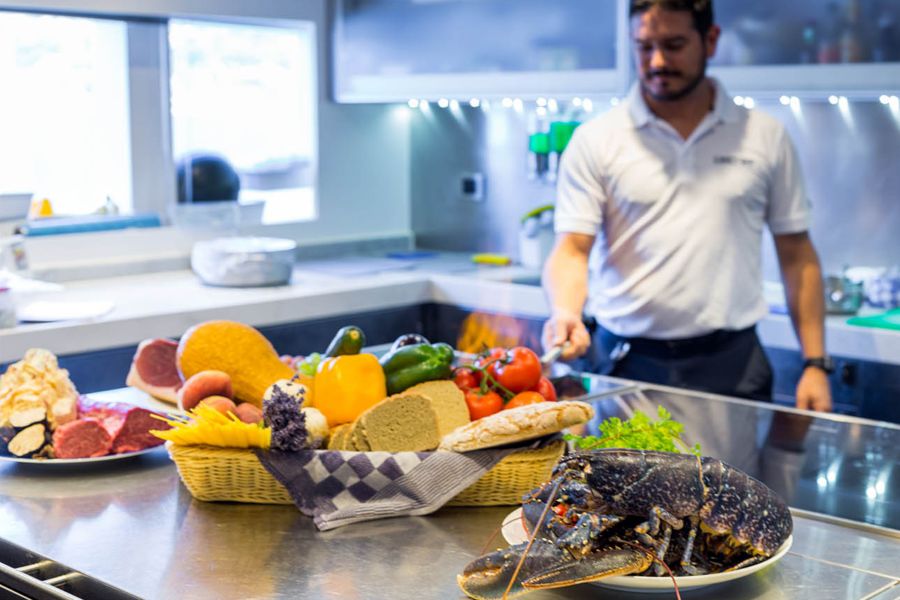 When booking crew, please note that there is a staff-to-guest ratio of 1:10. A chef is required for any catered charters with a staff-to-guest ratio of 1:50.