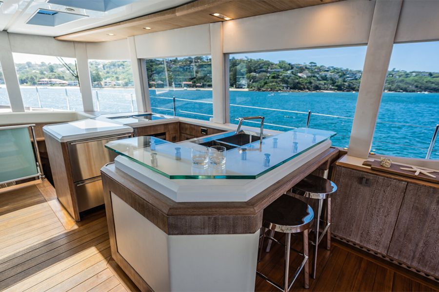 A security deposit of $5,000 will be taken either as a credit card guarantee or held in cash payable no less than 14 days prior to the commencement of the charter. The hirer acknowledges that they are chartering a high value vessel and that utmost care must be taken at all times. Any damages caused by the hiring party will be the responsibility of the hirer, who will reimburse all costs of rectification to NISI. Care should be taken with all surfaces such as timber floors and stone benchtops. Do not use products that could mark fabrics or cause damage to the premium finishes of the vessel.