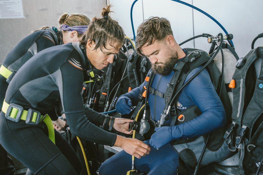 Scuba diving must be organized in advance. Divers must complete pre-dive paperwork and beginners must complete a pool skills session the day before the charter date. Certified divers must bring their certification card.