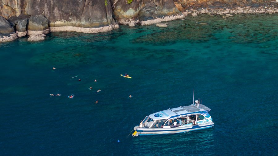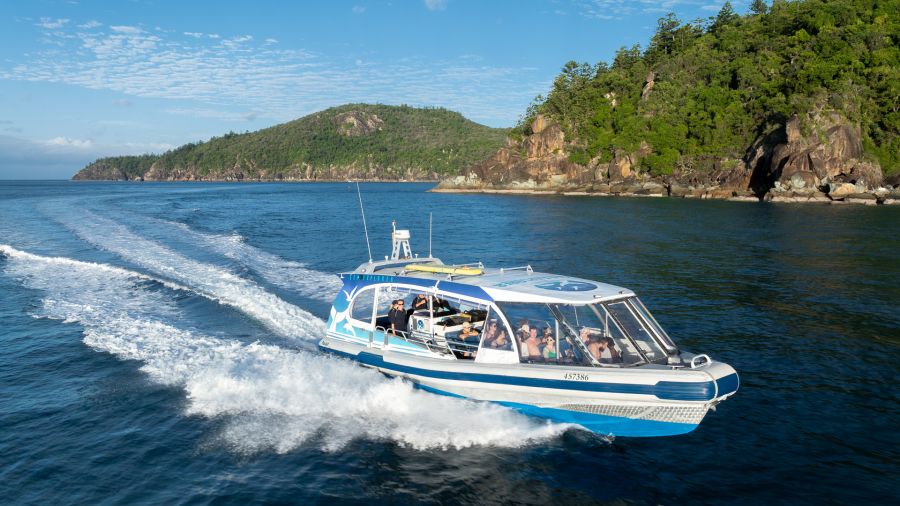 - Departs Coral Sea Marina, Port of Airlie, or Shute Harbour