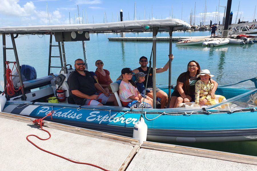 Paradise Explorer takes up to 6 people. For groups 5 or 6, please provide passenger weights to determine if everyone will fit. Generally it's 4 adults max on board + 2 children (under 35 kgs) for maximum comfort.