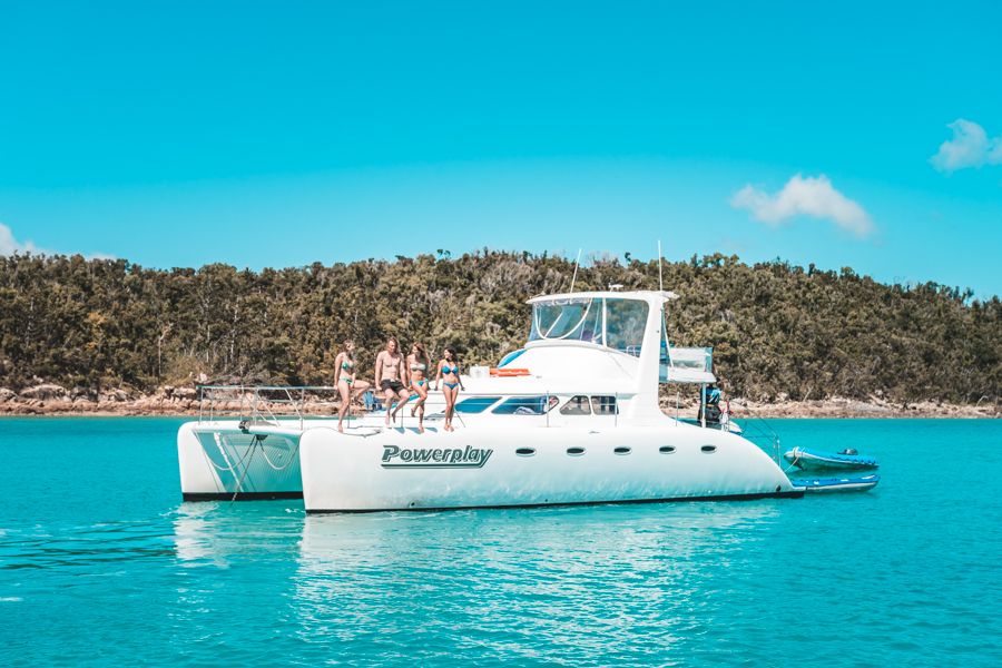 Get ready for a memorable cruise through the Whitsundays Islands on-board the fan favourite vessel Powerplay. Experience the beautiful evening sunset with picturesque views while relaxing in style. Powerplay catamaran offers endless comfort on-board with front-deck lounging nets, ample seating, and an exclusive lower passenger tour. Our experienced crew will take care of your every need, so all you need to do is sit back with your cocktail and enjoy the views with your family and friends!