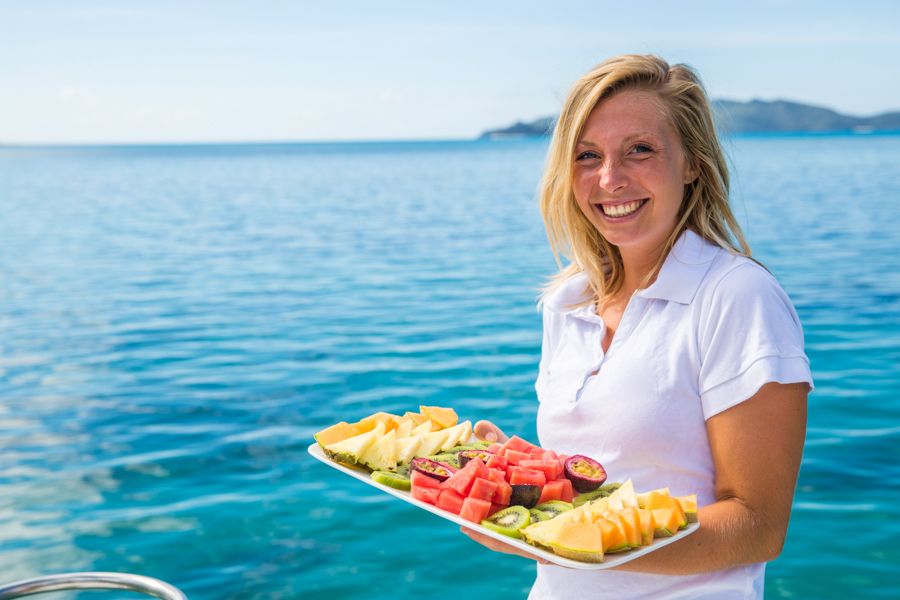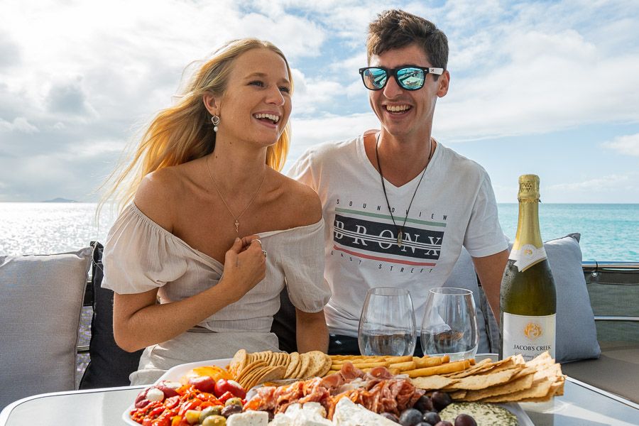 - 5:15pm: Enjoy a complimentary cocktail and nibbles as you sail across the Whitsunday passage