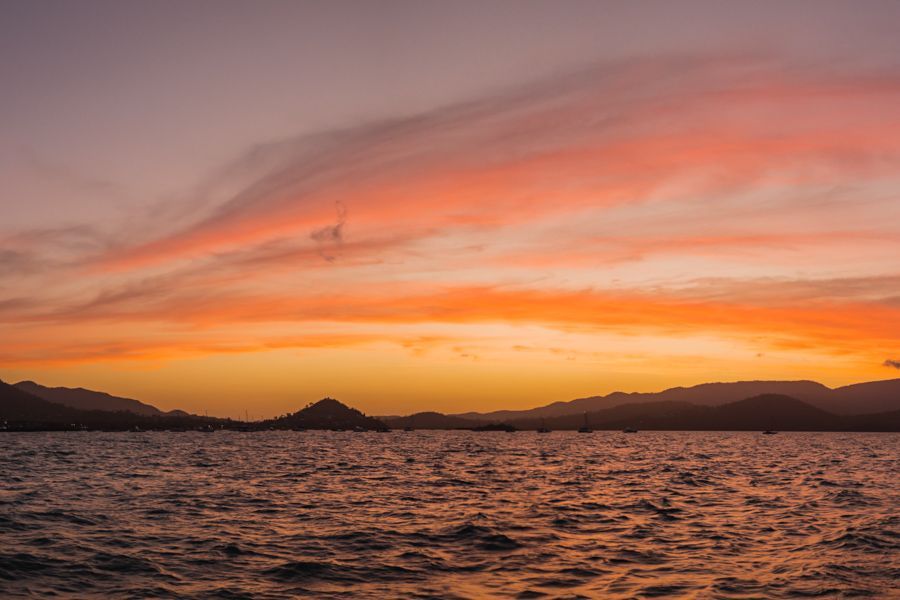 - 7:00pm: Return to Airlie Beach chasing the sunset into the moonlight