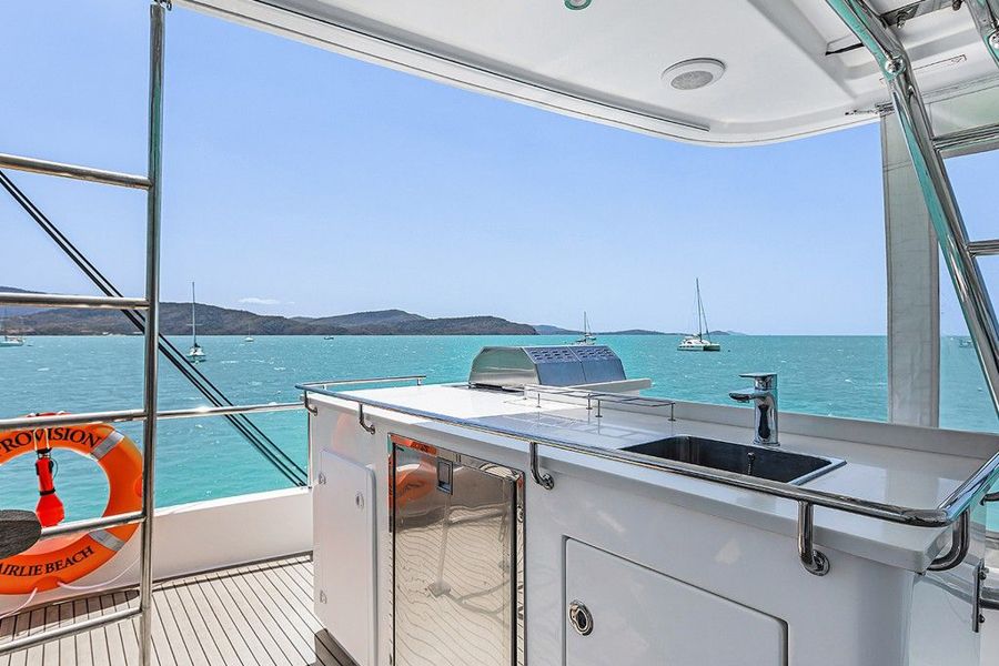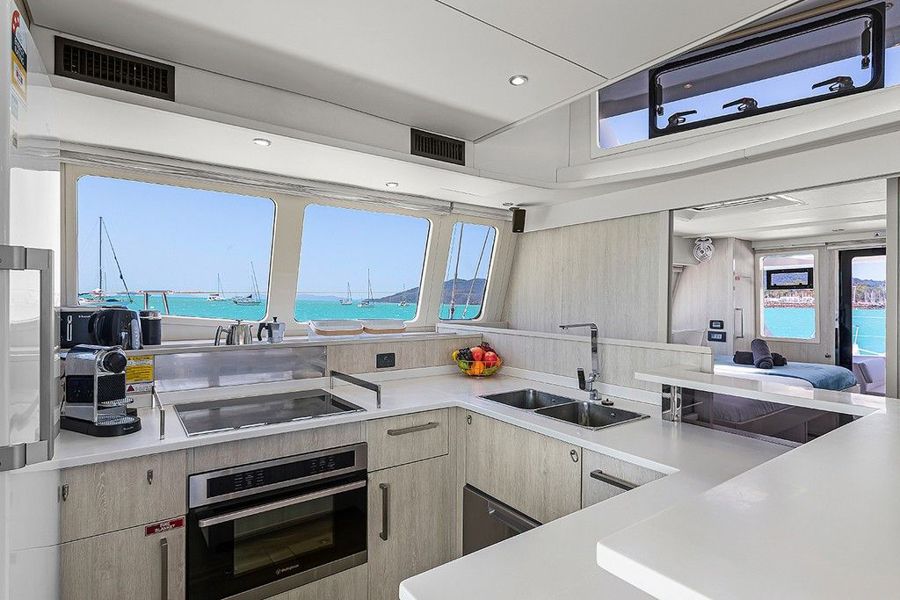 As this is a bareboat charter and not crewed, you will need to bring your own food and drinks along. There is a large galley (kitchen) on board where you can cook and store everything you bring on board.