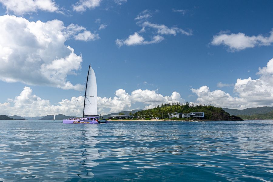 Treat yourself to a luxurious day out on deluxe catamaran, Camira. The 85-foot yacht combines practicality with a modern twist. With bright purple interiors and exteriors, you won’t miss Camira as she glides her way through the bays of the Whitsundays. Hike up to the spectacular Hill Inlet lookout where you overlook the famous Whitehaven Beach. Following the lookout, spend time on Whitehaven Beach, visit fringing coral reefs for snorkelling, and enjoy a BBQ lunch back on board.