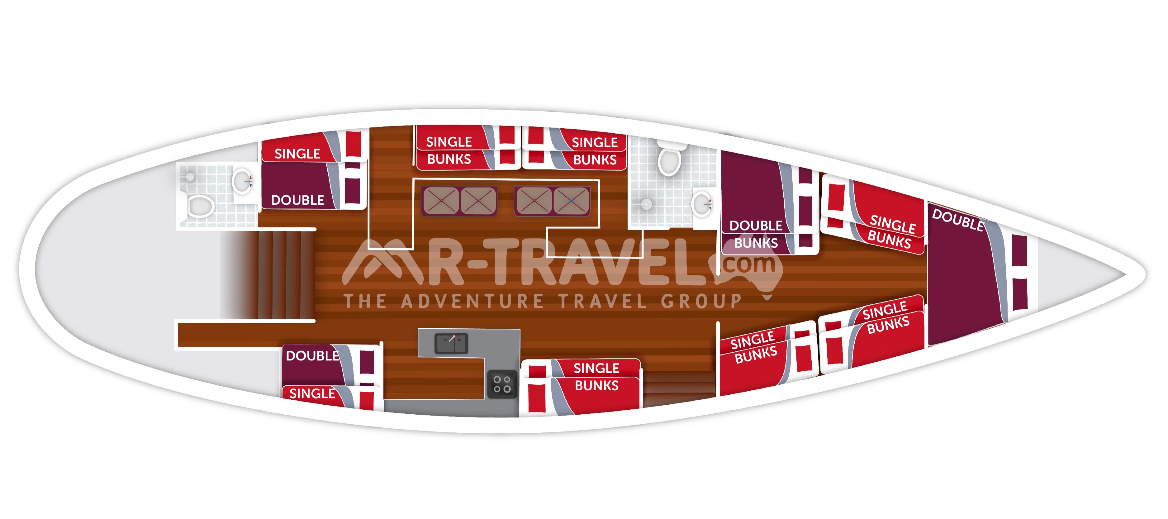 - Shared Double: Double bed (sleeps two people), usually with a single bunk on top.