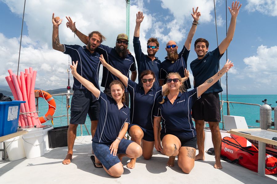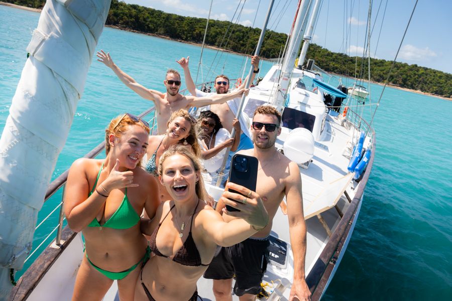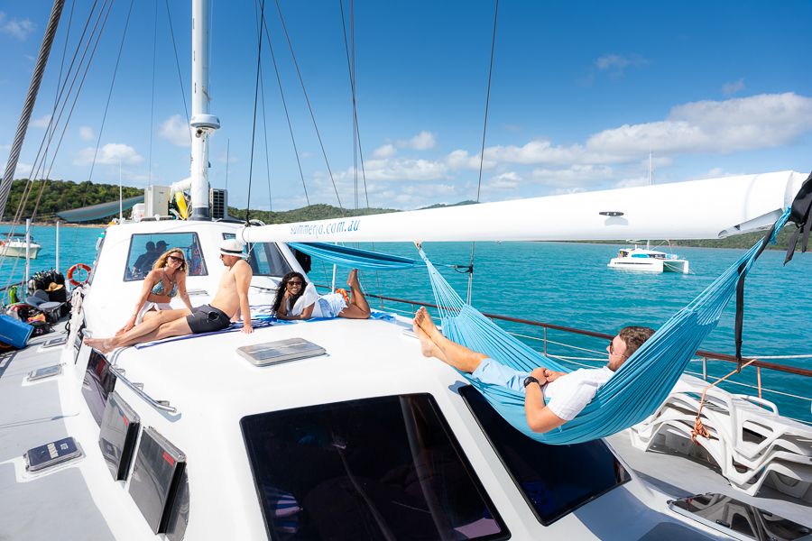 Whether you've opted for a pick-up from your accommodation, or you're making your own way, the adventure begins at the Port of Airlie, where the Summer Jo crew will be waiting to welcome you aboard. Once everyone is settled in, the incredible crew will set sail for the Whitsunday Islands!