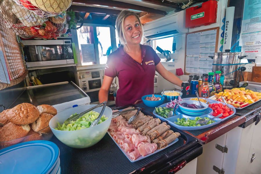 You will also need to bring your own alcoholic beverages, available for purchase in town, or from Coral Sea Cellars at the southern end of Coral Sea Marina. No glass bottles permitted (with the exception of wine).