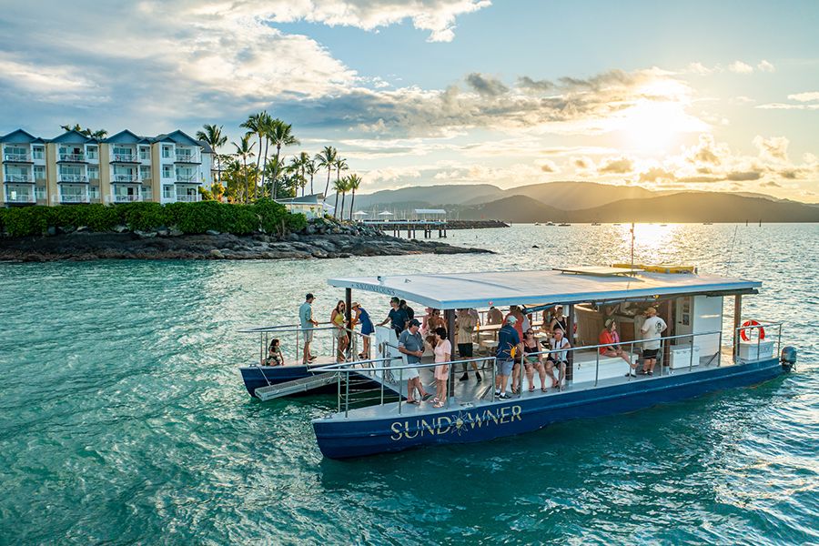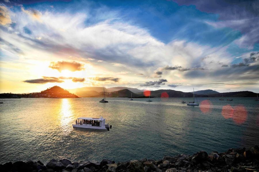 Kick off the night with a magical cruise around Pioneer Bay at sunset! Admire the rolling, forested hills of the Airlie Beach area and watch the sun drift down below the horizon. Sunsets...