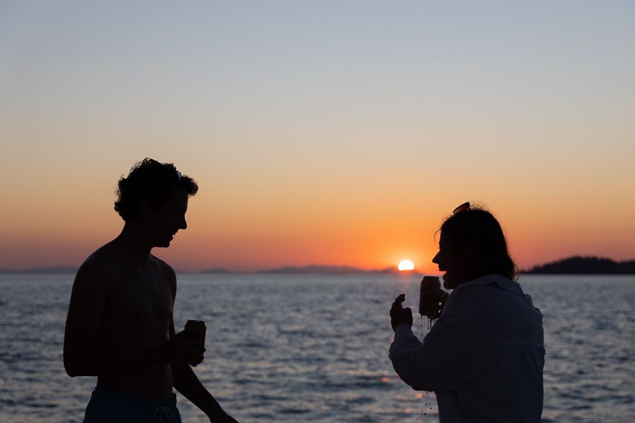 Witness a gorgeous, tropical sunset in the Whitsundays on a private sunset cruise charter from Hamilton Island!