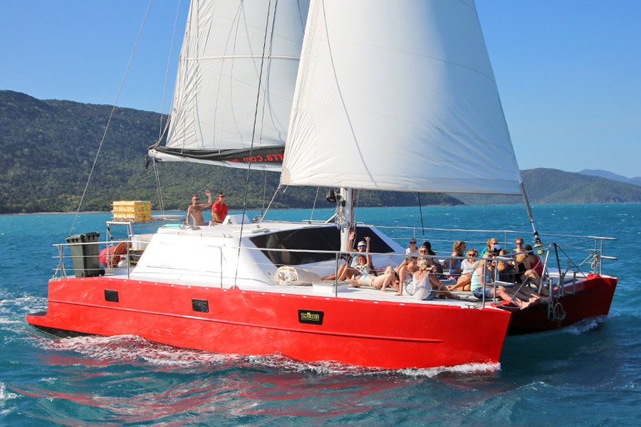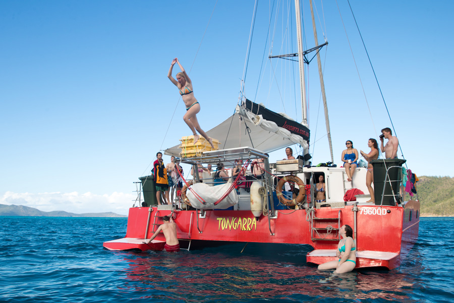 With her vibrant red and smiling passengers, it’s difficult to look past Tongarra out on the water. For 2 extravagant days and nights, passengers on board Tongarra will explore the Whitsundays, taking in the natural wonders and lazing about in the sun. Chill out on the spacious deck, snorkel colourful reefs and get up close and personal to the vibrant marine life, let loose at Whitehaven Beach and join in on the onboard fun at night! Tongarra is a spectacular tour for those looking for an out-of-the-box adventure, featuring a packed itinerary and a young, vibrant crowd! Feeling adventurous? The crew will even show you the ropes of sailing!