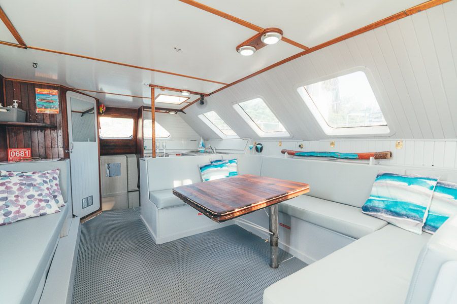 - Huge foredeck for lounging, sunbaking and sleeping under the stars