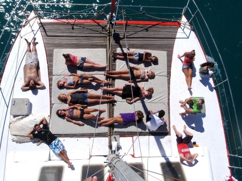 - HUGE foredeck for lounging, sunbaking and sleeping under the stars