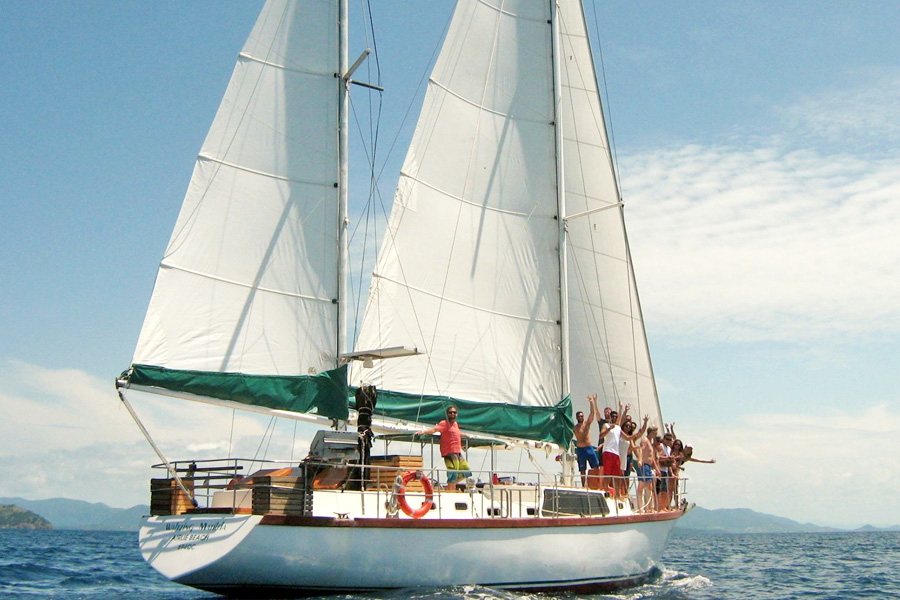 This 60ft sailboat provides a spacious and relaxed atmosphere to cruise our northern tropical waters, on board you will find a spacious saloon area with 8ft of headroom, plenty of deck space with room to stretch out, comfortable cabins with a choice of private or shared cabins with no sleeping in common areas with the added bonus of hand basins in most cabins