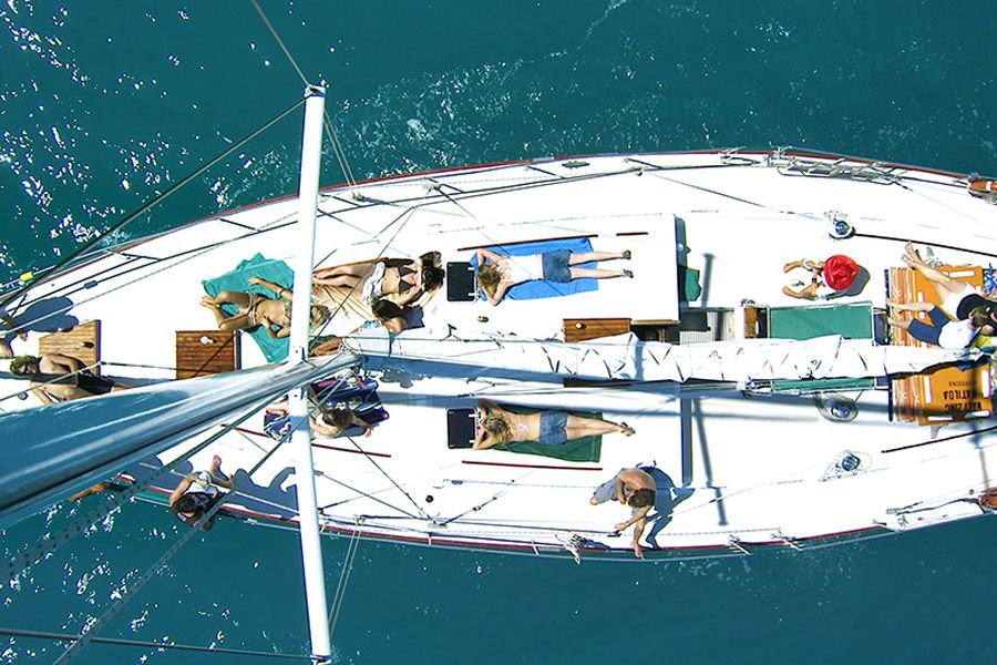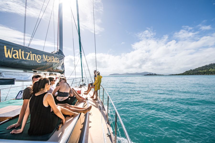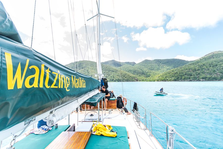 Waltzing Matilda is a glorious, traditional ketch that allows you to cruise through the turquoise waters of the Coral Sea in comfort. Embark on an exciting and relaxing day in the Whitsundays with a private day charter on this beloved vessel. Sail to the sandy shores of Whitehaven Beach, hike up to the spectacular Hill Inlet Lookout, and snorkel in the fringing reefs of the Great Barrier Reef Marine Park. You're sure to have an unforgettable day at sea!