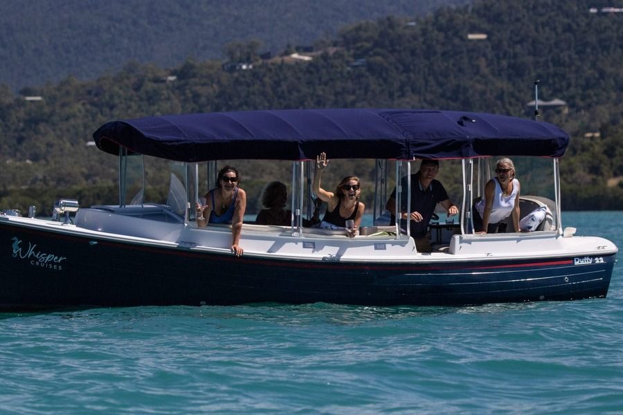 Meet your Whisper Cruises guide in front of Sorrento Bar & Restaurant, Coral Sea Marina five minutes prior to your departure time. You'll then be brought down to Tallulah, a smooth, 22-foot electric boat.