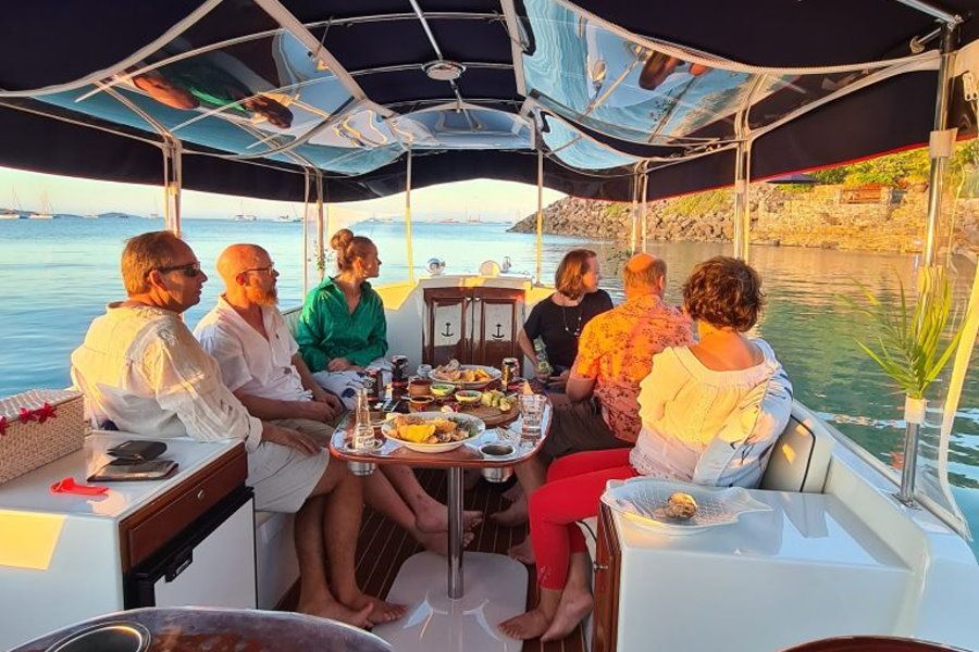 Combine a serene sunset cruise along the beautiful coastline while admiring majestic turtles in their natural habitat on board the Whisper Turtle Spotting Sunset Cruise. This unique tour offers a great mix of relaxation while appreciating the sensational Whitsunday sunset, and a sense of adventure while you get up and close to amazing sea creatures. Kick back with a glass of champagne, while you nibble on fresh canapes offered on board. The intimate size vessel is one of the quietest in the area, so you can truly unwind as the breeze whispers past you!