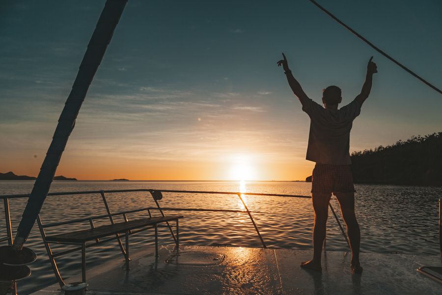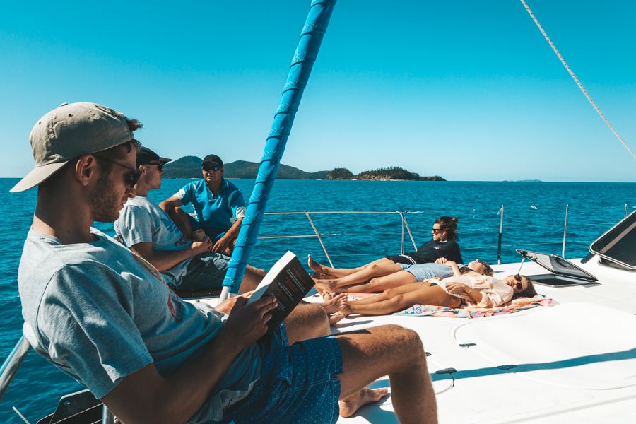 - Lounge on the expansive decks as you leisurely sail through the Whitsunday Islands