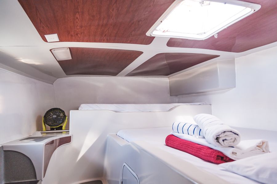 - Private Triple Cabin: One double bed and one single bed in a private cabin with shared amenities