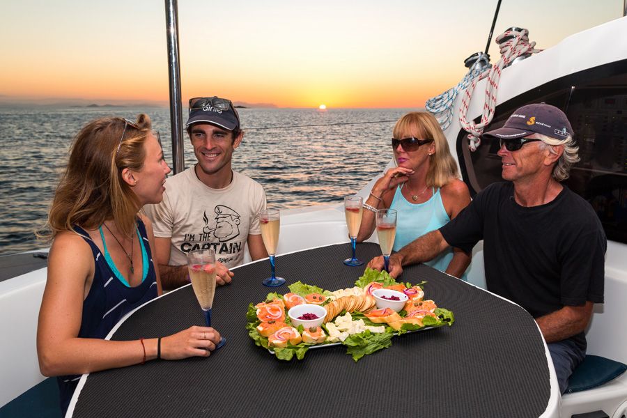 - Lounge on the foredeck nets as you sail through the waves, or relax under the sails