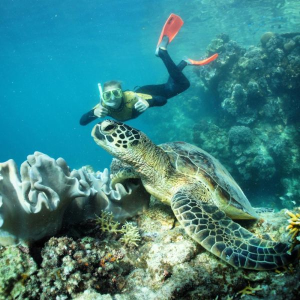 - Snorkel gear, SUPs, and transparent bottom kayaks provided